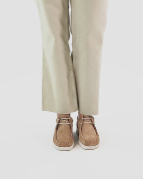 Women's shoes. Natural suede. Lace-up Closure. Leather lining. Removable anatomical insole. Flexible and durable Polyurethane sole. Shaft height: 10,3 cm. Heel height: 4.7 cm. 100% Made in Spain.