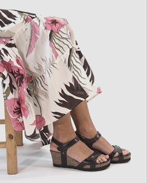 Keilsandalette. Nappaleder in Braun. Klettverschluss. Lederinnenfutter. Anatomisch Innensohle. Leichte, flexible und robuste Sohle aus Kork und EVA. Absatzhöhe: 6.5 cm. 100% Hergestellt in Spanien.